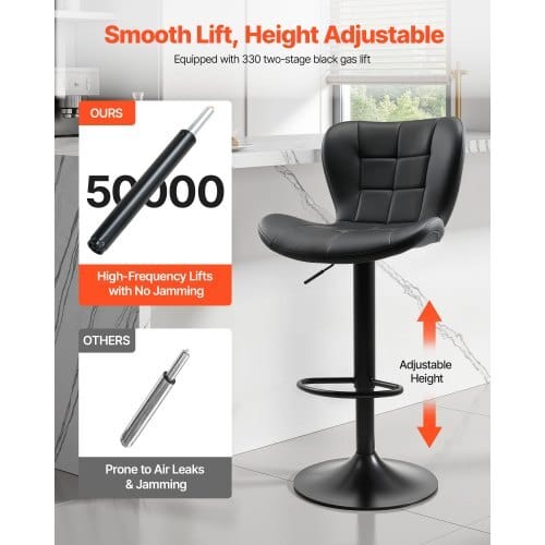 VEVOR Bar Stool Set of 2, Modern PU Leather Counter Height Stools,Swivel Kitchen Barstool with Back and Footrest, Height AdjustableArmless Bar Chair, Island Barstools for Kitchen, Dining Room,Black