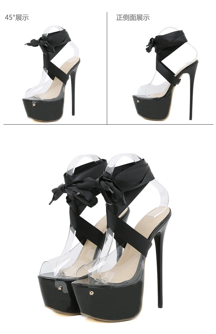 Be the first to review “Color: black, Shoe Size: 36 – Black Sexy Thigh High Broad Band Strap Platform Sandals Women Transparent Peep Toe Club/Party Stripper 16CM Stiletto Shoes”