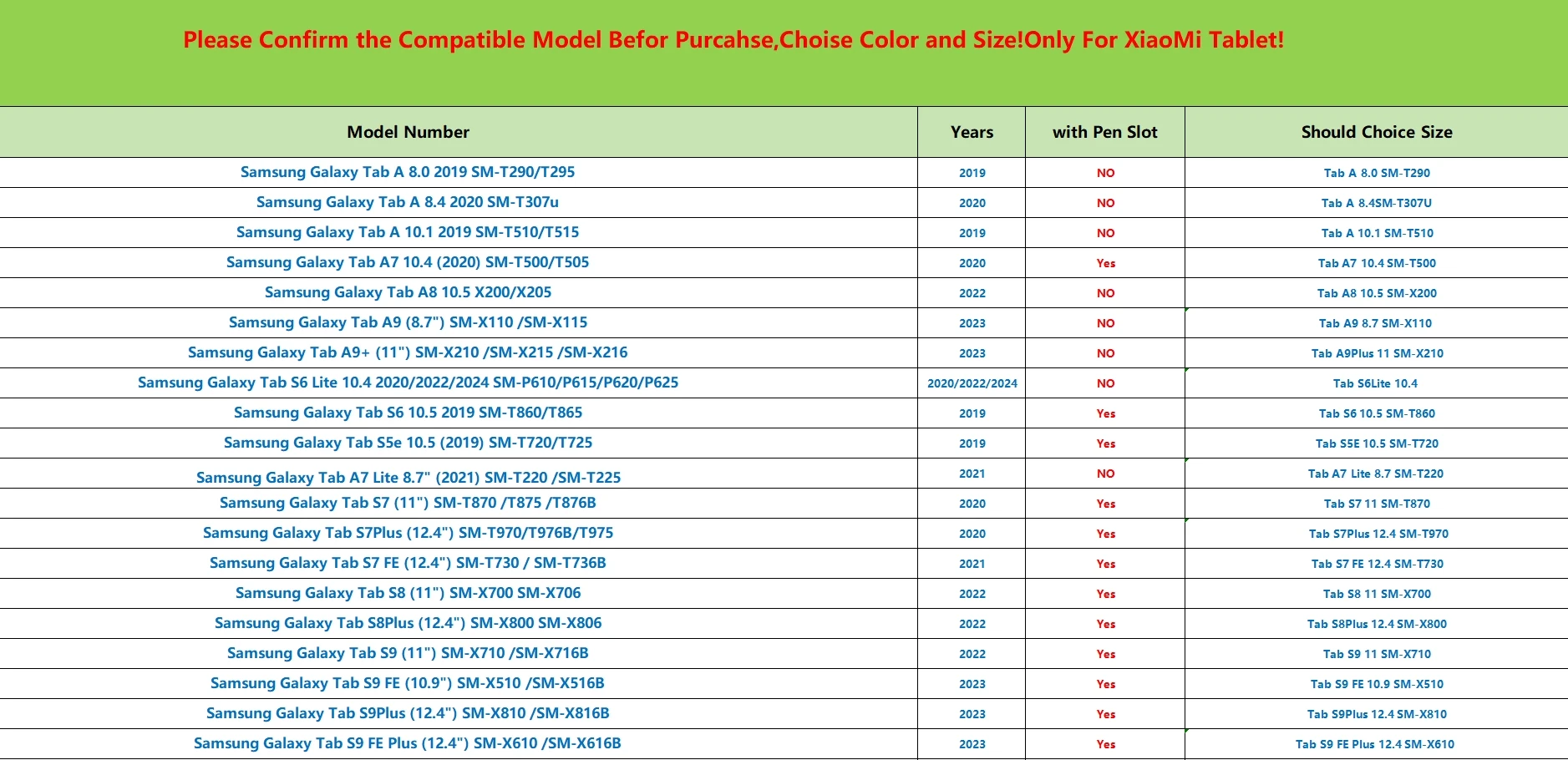 Model Compatibility: Galaxy Tab S7 FE WLAN (Wifi)