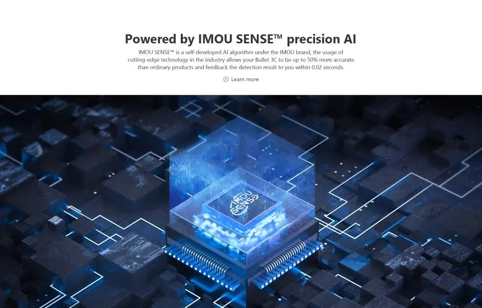 IMOU SENSE is a self-developed AI algorithm under the IMOU brand, the usage of cutting-edge technology in the industry allows your Bullet 3C to be up to 50% more accurate than ordinary products and feedback the detection result to you within 0.02 seconds.