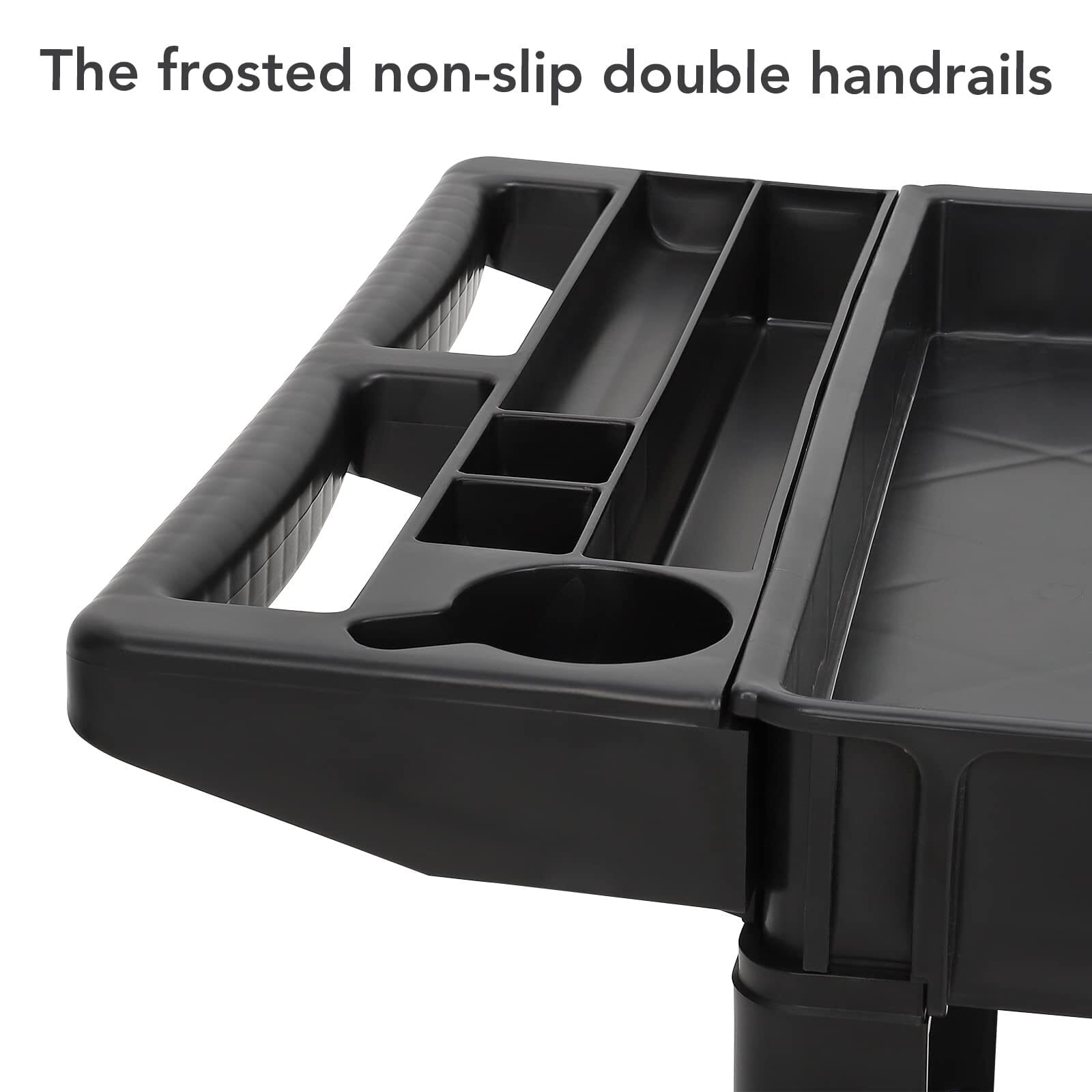- PERFECT FOR THE HEAVIEST LOADS:This service cart with wheels is perfect for transporting materials, supplies, and heavy loads in almost any environment. Structural foam provides more durability than other materials, offering 500 pounds of storage weight capacity.